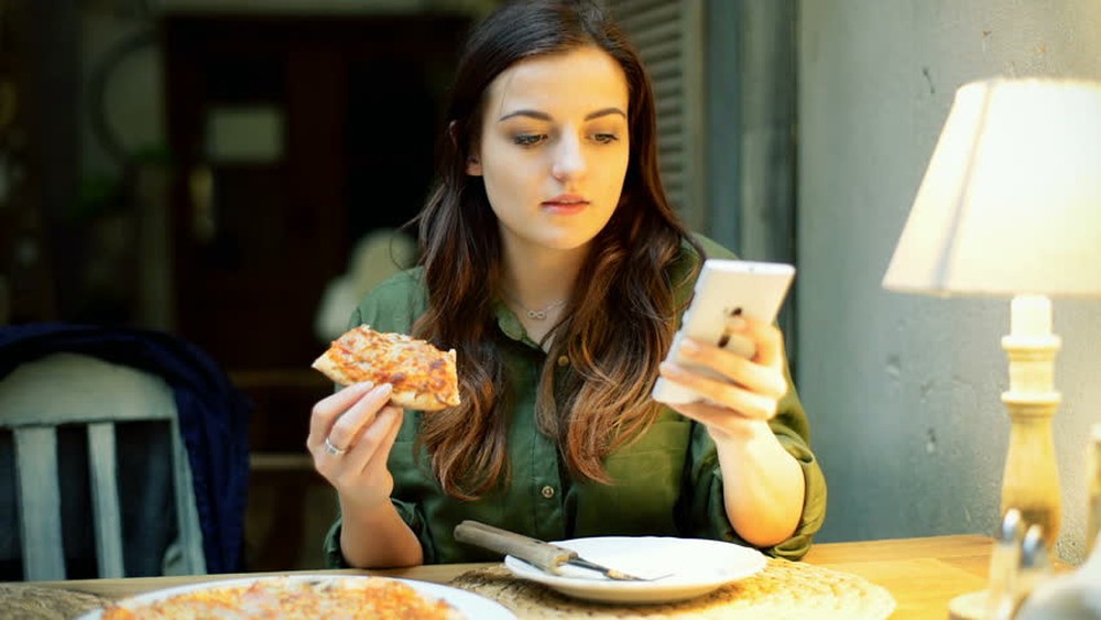 Thói quen nghịch điện thoại hoặc xem tivi trong bữa ăn sẽ gây ra sự phân tâm và vì thế, rất nhiều người sẽ không thật sự chú ý đến lượng thức ăn đã tiêu thụ . Ngoài trừ trường hợp bạn ăn theo suất ăn có phân chia rõ ràng.